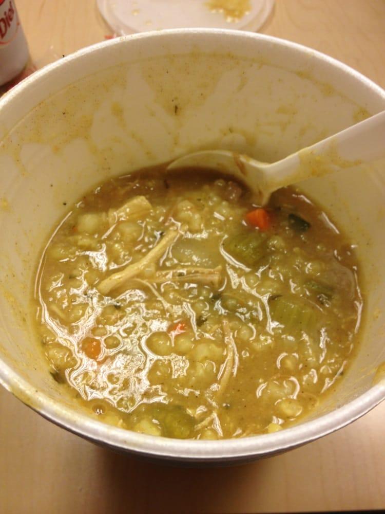 Had the chicken curry rice soup and cucumber salad. Both were very good.